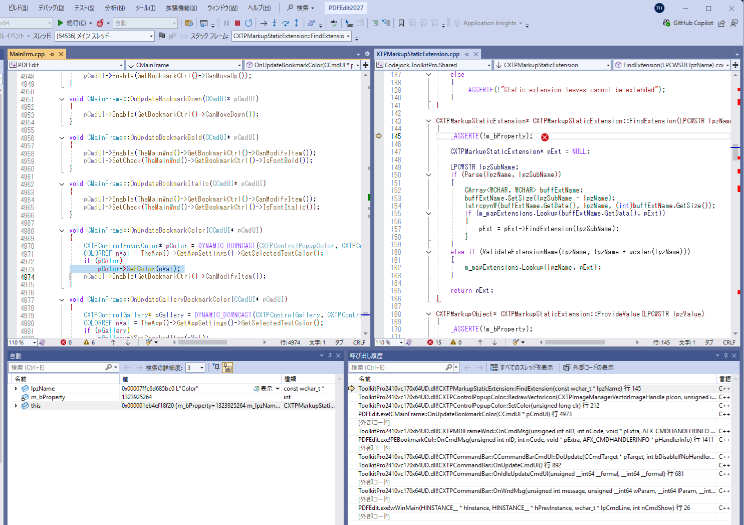 I added a “change font color” button to a CXTPToolBar. The code is as follows: